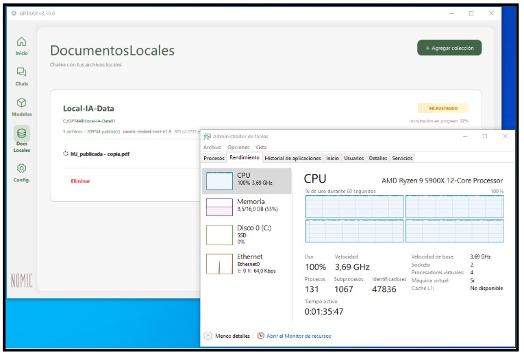 Llegados a este punto, tenemos configurado nuestro software de IA y seleccionado un modelo de razonamiento. Procedamos ahora a indicarle donde almacenar ficheros de documentos que pretendemos añadir a la base de datos de conocimiento de nuestra IA y sobre los cuales queremos/podremos interrogar a nuestra herramienta.